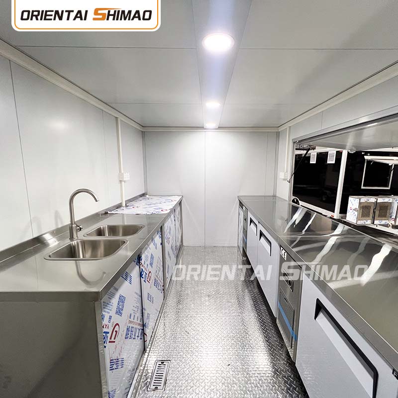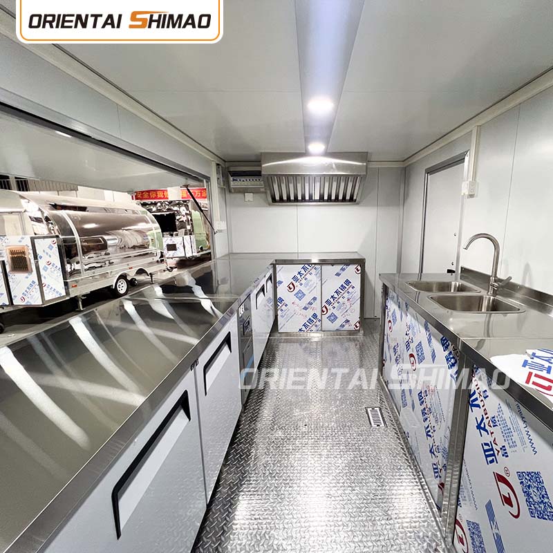Внутренняя часть из нержавеющей стали: Внутренняя часть изготовлена из нержавеющей стали, что обеспечивает прочность и долговечность внутренней части, которую легко чистить и обслуживать и которая соответствует стандартам пищевой гигиены. Использование нержавеющей стали не только увеличивает срок службы фудтрака, но и обеспечивает гигиеничность и безопасность процесса приготовления пищи.