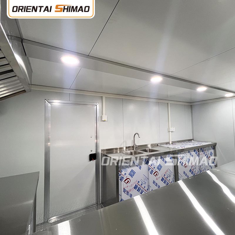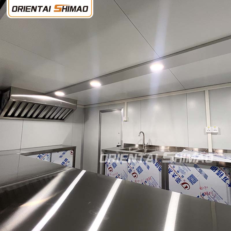 Внутренняя планировка: Разумная планировка кухни, столовой, кладовки и других помещений для обеспечения максимального использования пространства. В то же время в соответствии с потребностями бизнеса создаются различные функциональные зоны, такие как производственная зона, зона отопления, зона продаж и т. д., чтобы облегчить работу и повысить операционную эффективность.