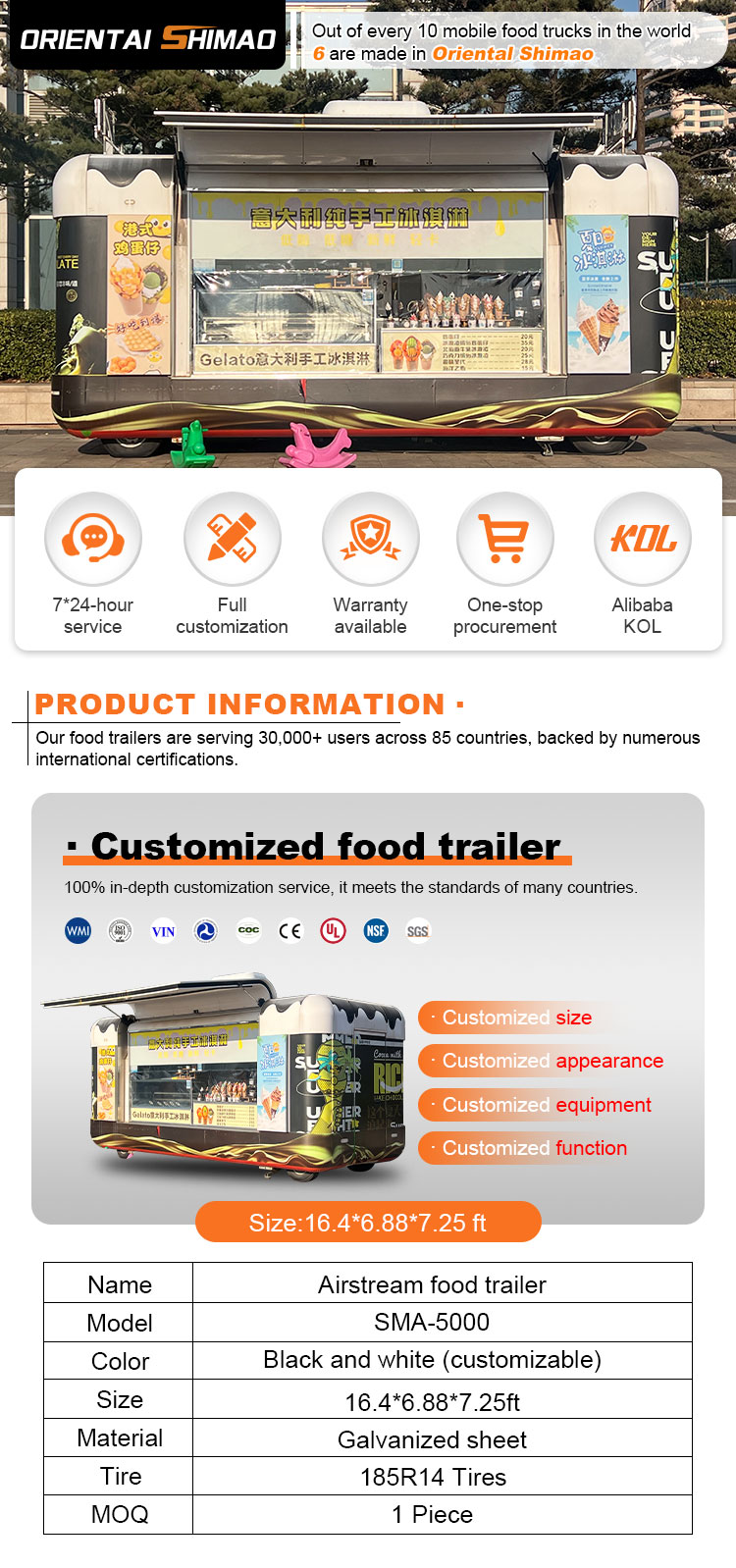 Мобильный трейлер для общественного питания Тележка для хот-догов с уличной едой Полностью оборудованный трейлер для еды Грузовик для еды