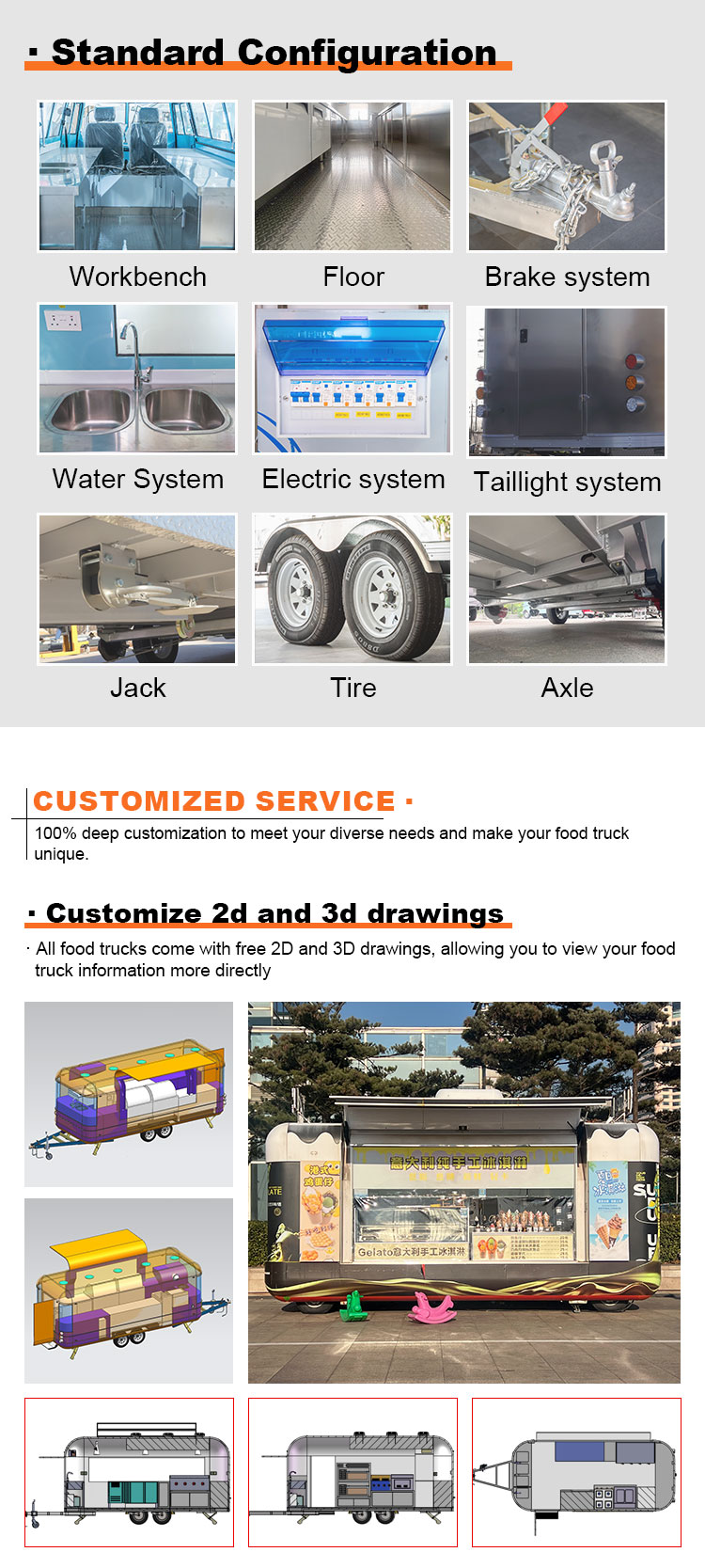 Тележка для еды Мобильная кухня Коммерческое оборудование для ресторанов Кейтеринг Электрический прицеп для еды Уличный грузовик для еды