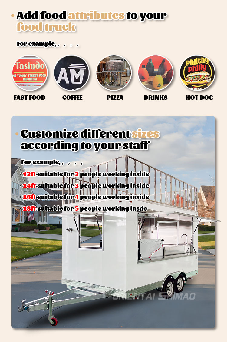Настройка размера: выходя за рамки традиционных границ, мы выходим за рамки размеров обычных фургонов с едой и предоставляем вам неограниченные возможности решений по настройке размера. Ищете ли вы небольшой и изысканный мини-фургон с едой, который можно легко передвигать по городским переулкам, или роскошный передвижной ресторан, который хочет иметь просторное пространство для размещения большего количества клиентов и оборудования, мы можем точно измерить и тщательно спроектировать его в соответствии с вашими конкретными потребностями, чтобы создать размер грузовика с едой, который соответствует реальным потребностям и полон творчества.