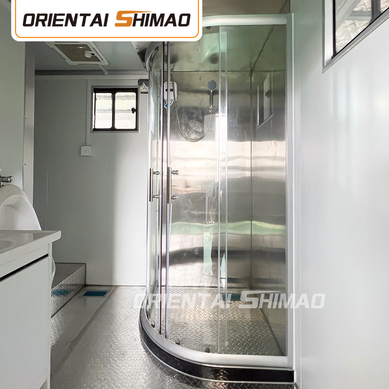 Модульная конструкция: эта сантехническая тележка имеет модульную конструкцию, пользователи могут выбирать количество единиц и конфигураций в соответствии с фактическими потребностями, например, одноместная комната, двухместная комната или семейная комната и т. д., чтобы гибко удовлетворять потребности в различных случаях. Каждый блок оснащен собственной системой вентиляции, раковиной и освещением для обеспечения комфорта и конфиденциальности.