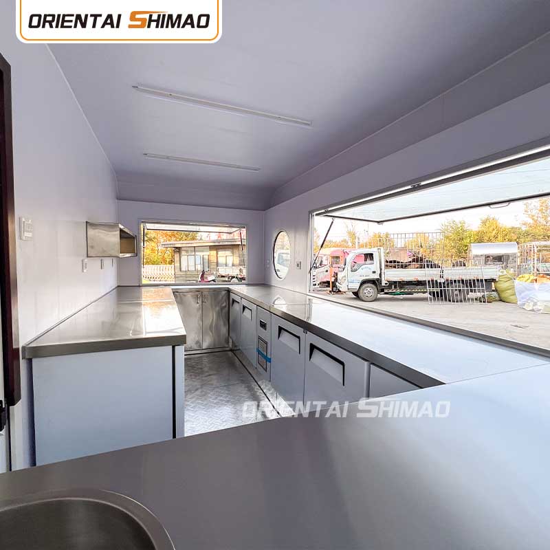 Универсальность: чтобы удовлетворить потребности различных сценариев общественного питания, в автомобиль встроено разнообразное профессиональное оборудование для приготовления пищи и хранения, начиная от кухонных принадлежностей и заканчивая местами для хранения ингредиентов, которые могут удовлетворить потребности разнообразных и высокоэффективных операций общественного питания и значительно повысить эффективность работы, будь то приготовление еды на месте или доставка фаст-фуда.
