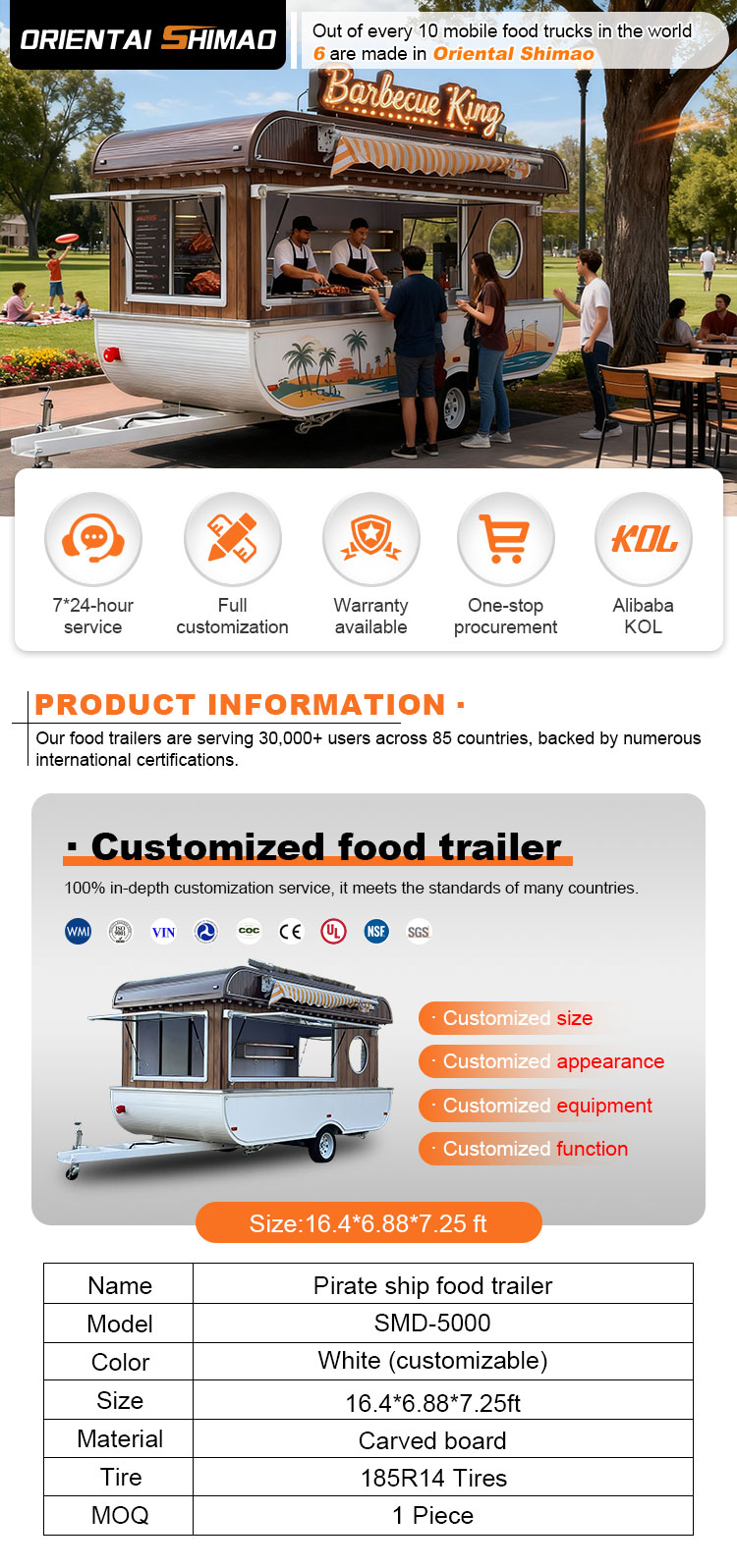 Мы можем предложить прицепы для общественного питания. Сертификаты: DOT, CE, SGS, SCI, ISO, COC,