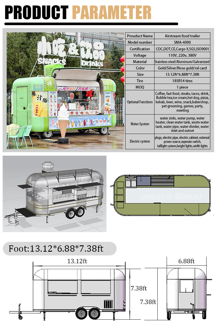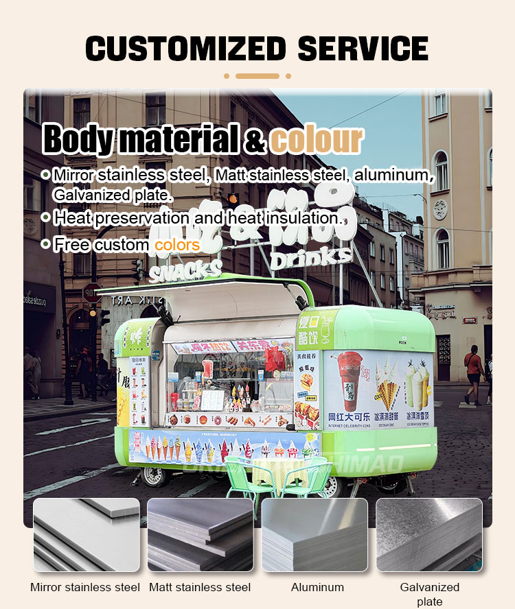 В качестве основного материала мы выбрали высококачественную нержавеющую сталь 304, которая известна своей превосходной коррозионной стойкостью и превосходной долговечностью и может сохранять стабильные характеристики в различных условиях окружающей среды, гарантируя, что наши продукты Food Trailer With Full Kitchen смогут сохранять свое превосходное качество и функциональность даже в долгосрочной перспективе и решать множество задач. Нержавеющая сталь 304 обладает превосходной устойчивостью к коррозии, поэтому грузовик не подвергается воздействию окисления или ржавчины, что значительно продлевает срок его службы. Превосходная коррозионная стойкость нержавеющей стали 304 делает грузовик менее подверженным окислению и ржавчине, что значительно продлевает срок его службы.