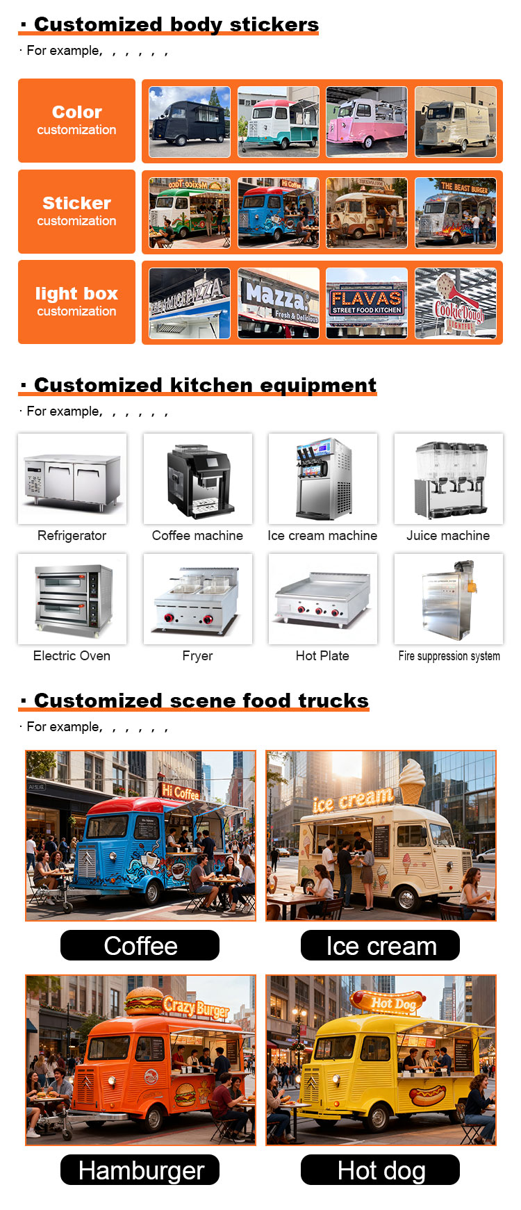 Универсальность: чтобы удовлетворить потребности различных сценариев общественного питания, в автомобиль встроено разнообразное профессиональное оборудование для приготовления пищи и хранения, начиная от кухонных принадлежностей и заканчивая местами для хранения ингредиентов, которые могут удовлетворить потребности разнообразных и высокоэффективных операций общественного питания и значительно повысить эффективность работы, будь то приготовление еды на месте или доставка фаст-фуда.