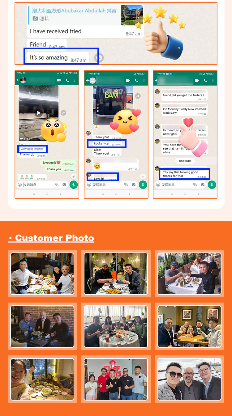 В качестве основного материала мы выбрали высококачественную нержавеющую сталь 304, которая известна своей превосходной коррозионной стойкостью и превосходной долговечностью и может сохранять стабильные характеристики в различных условиях окружающей среды, гарантируя, что наши продукты Trailer Food Truck сохранят свое превосходное качество и функциональность даже в долгосрочной перспективе и справятся с множеством проблем. Нержавеющая сталь 304 обладает превосходной устойчивостью к коррозии, поэтому грузовик не подвергается воздействию окисления или ржавчины, что значительно продлевает срок его службы. Превосходная коррозионная стойкость нержавеющей стали 304 делает грузовик менее подверженным окислению и ржавчине, что значительно продлевает срок его службы.