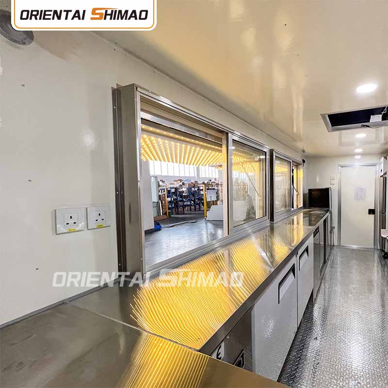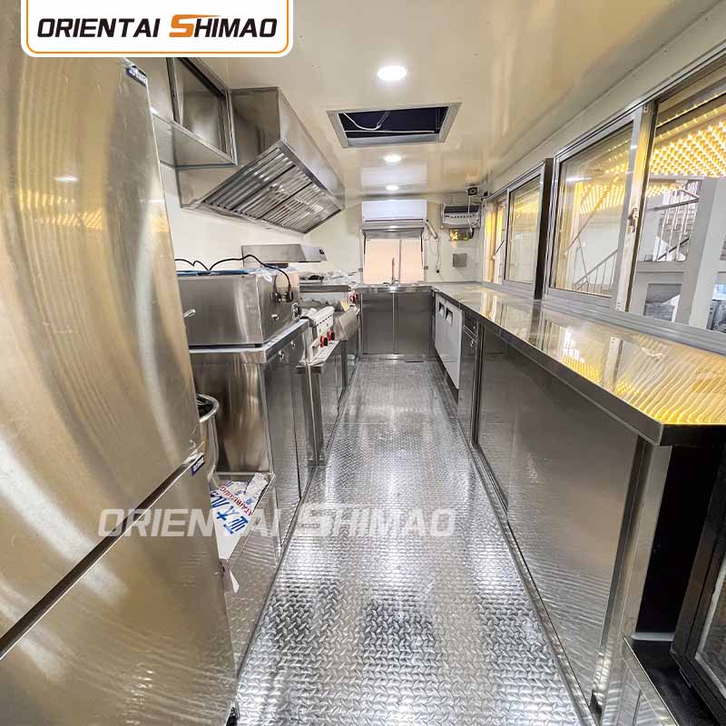 Внутренняя часть из нержавеющей стали: Внутренняя часть изготовлена из нержавеющей стали, что обеспечивает прочность и долговечность внутренней части, которую легко чистить и обслуживать и которая соответствует стандартам пищевой гигиены. Использование нержавеющей стали не только увеличивает срок службы фудтрака, но и обеспечивает гигиеничность и безопасность процесса приготовления пищи.