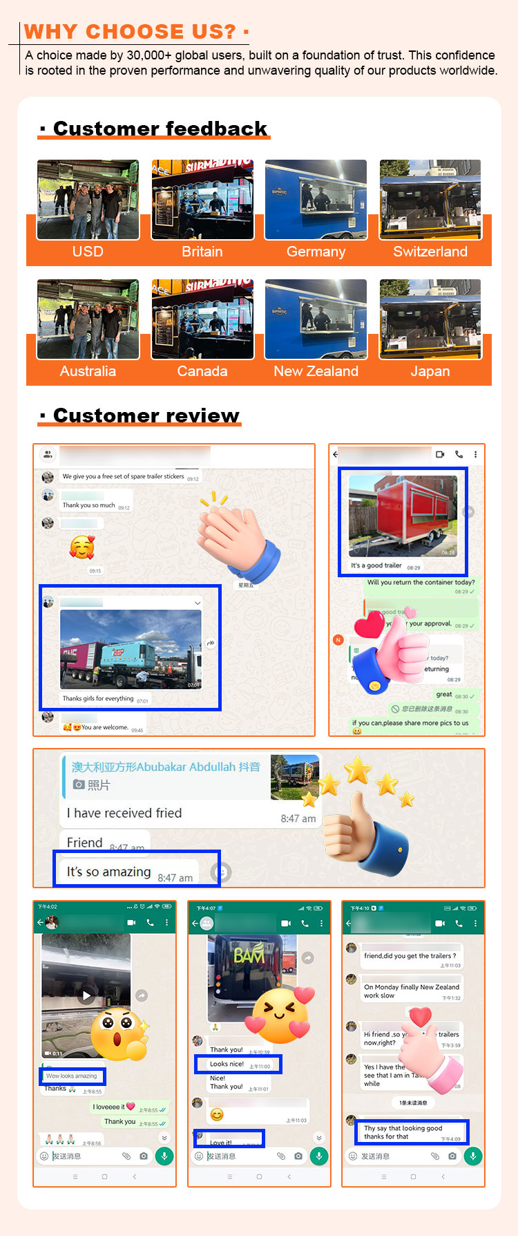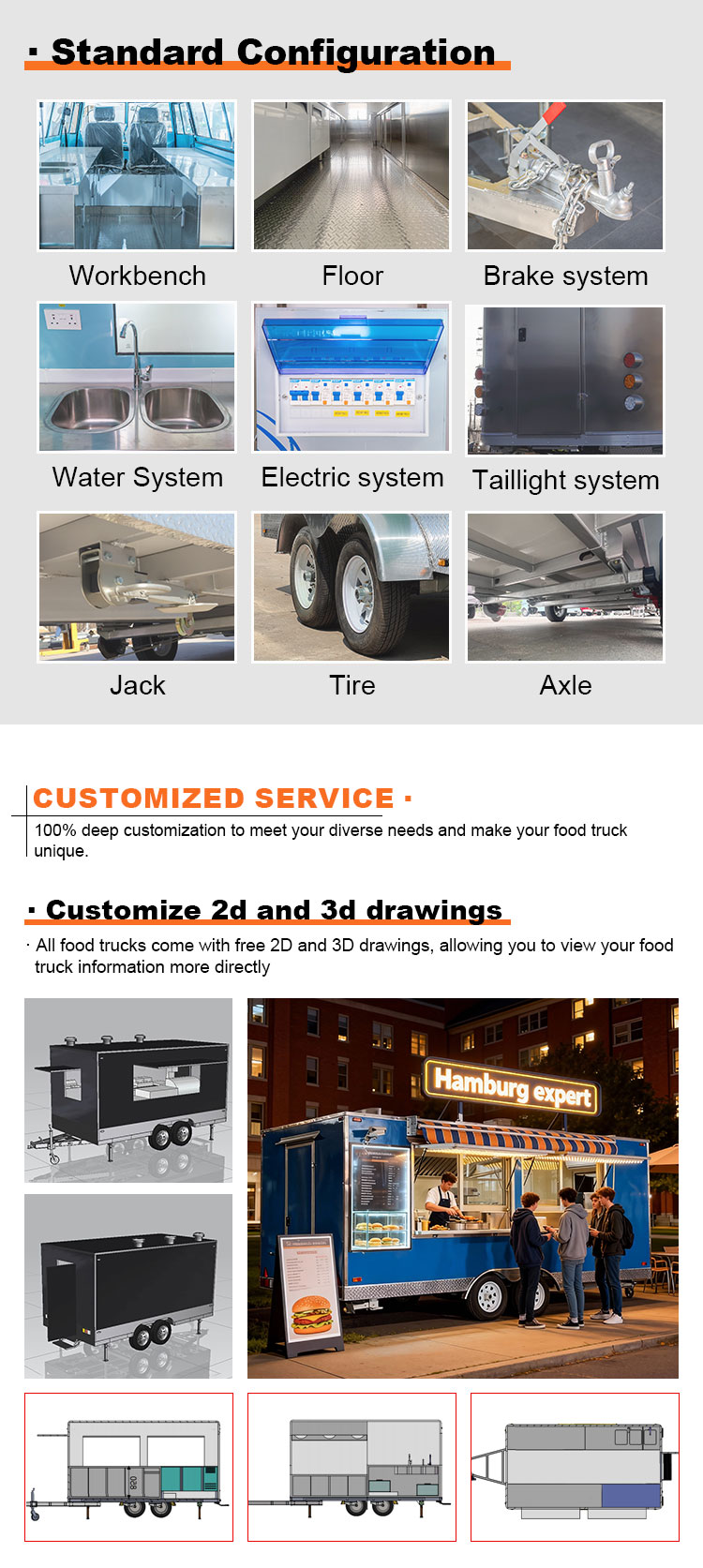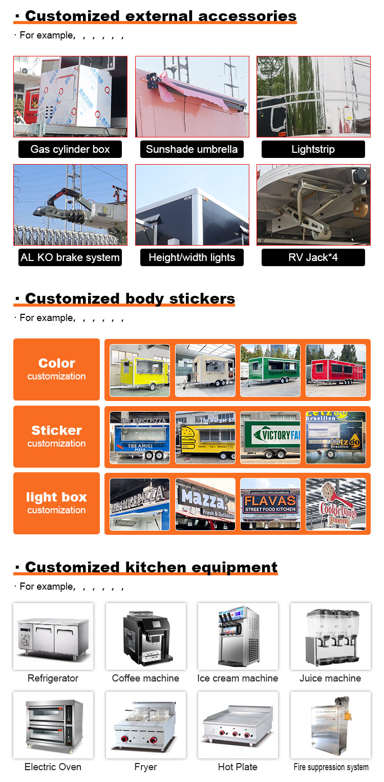 Материал и процесс: выбирайте высококачественные материалы и передовой производственный процесс, чтобы фургон с едой выглядел красиво и долговечно.