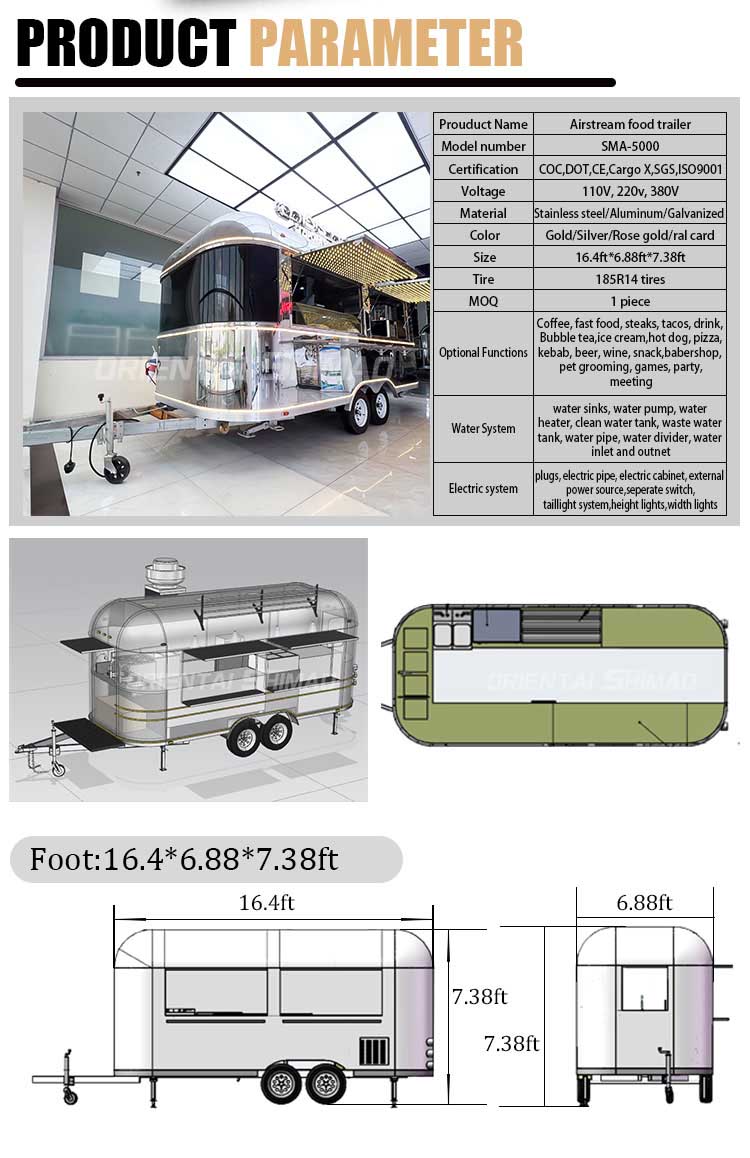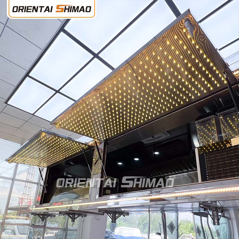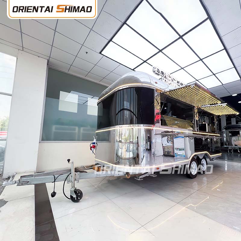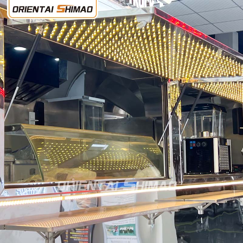 Золотистая нержавеющая сталь: внешняя часть фургона для еды изготовлена из высококачественной золотой нержавеющей стали. Этот материал не только обладает превосходной стойкостью к коррозии и истиранию, но и золотистый внешний вид увеличивает визуальную красоту и ощущение высокого качества, благодаря чему грузовик с едой может выделяться в различных условиях.