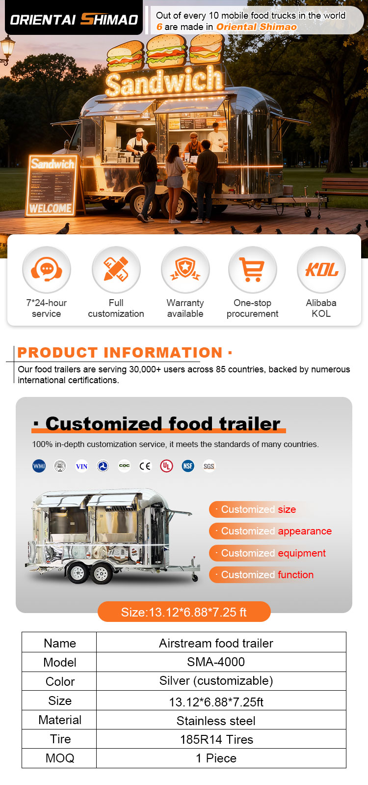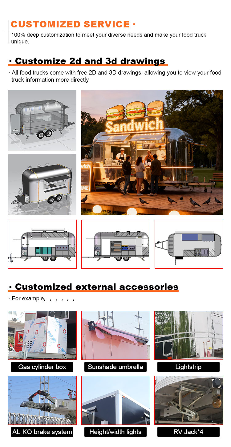Мобильный трейлер для общественного питания Тележка для хот-догов с уличной едой Полностью оборудованный трейлер для еды Грузовик для еды
