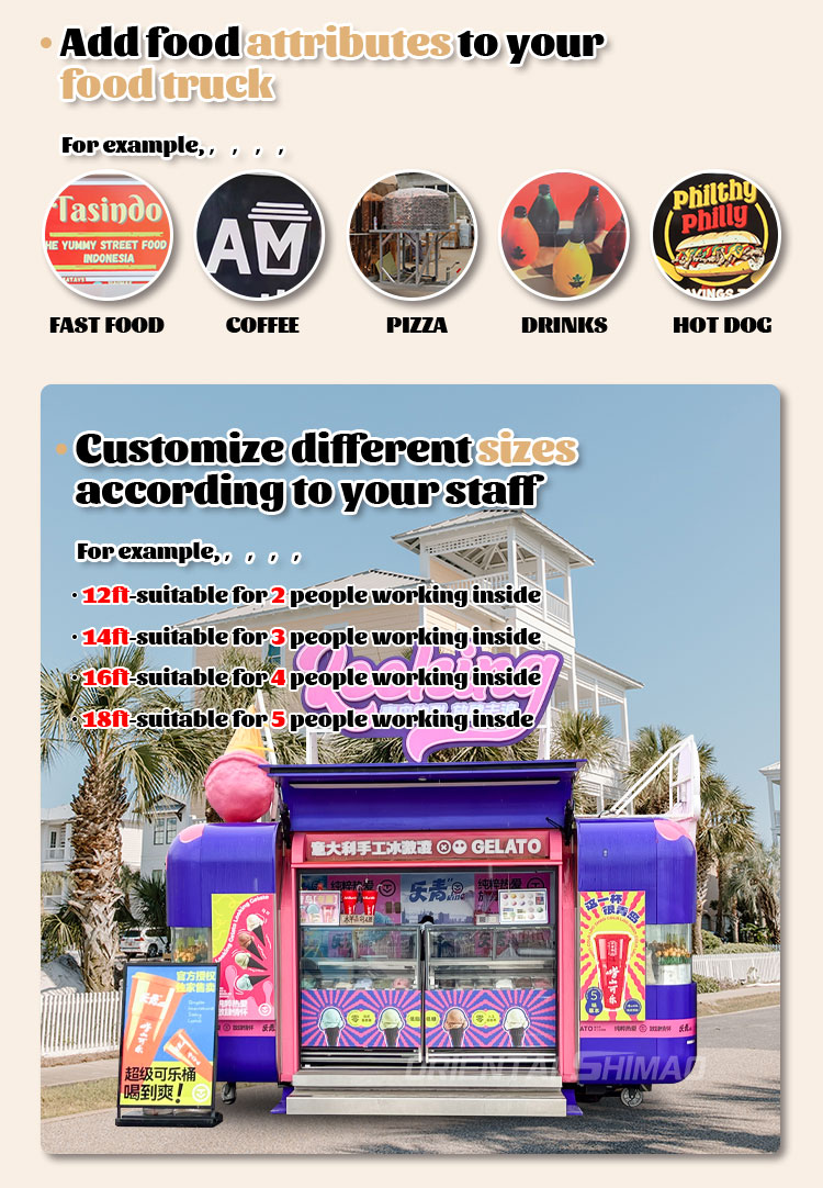 Материал и процесс: выбирайте высококачественные материалы и передовой производственный процесс, чтобы фургон с едой выглядел красиво и долговечно.