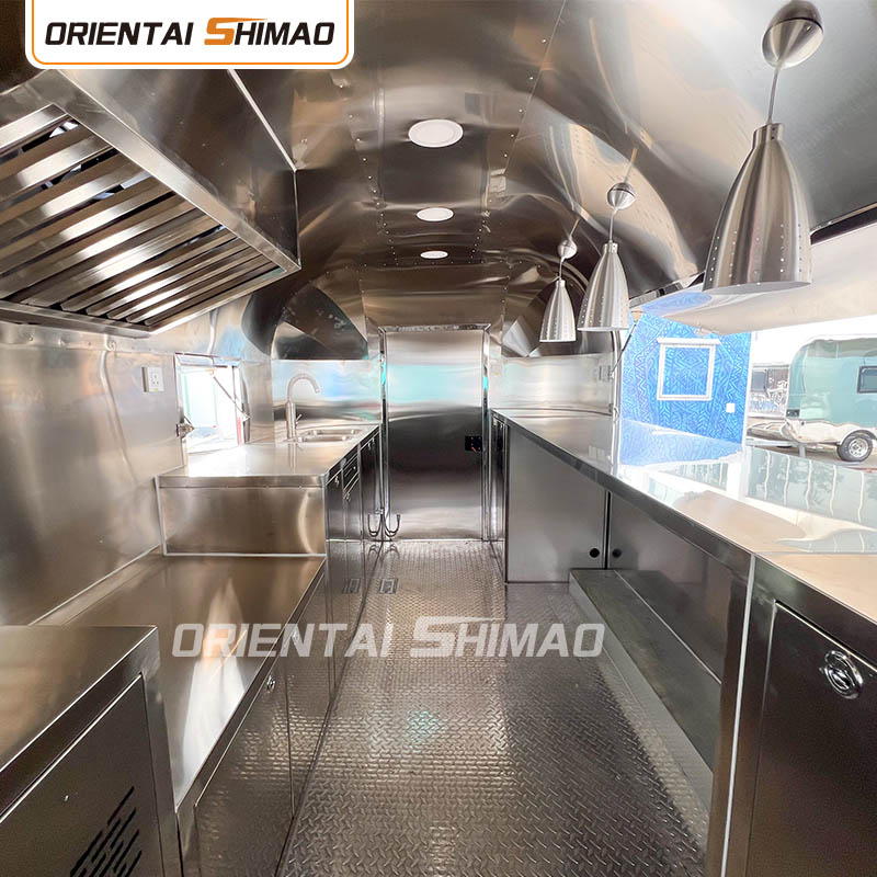 Внутренняя часть из нержавеющей стали: Внутренняя часть изготовлена из нержавеющей стали, что обеспечивает прочность и долговечность внутренней части, которую легко чистить и обслуживать и которая соответствует стандартам пищевой гигиены. Использование нержавеющей стали не только увеличивает срок службы фудтрака, но и обеспечивает гигиеничность и безопасность процесса приготовления пищи.