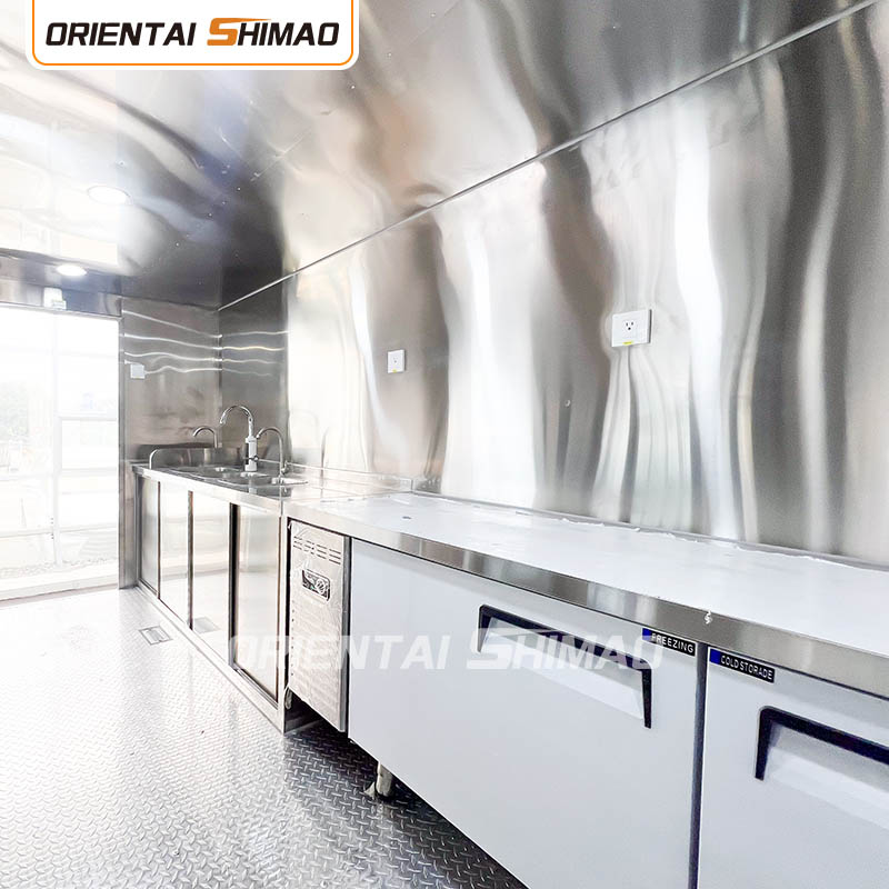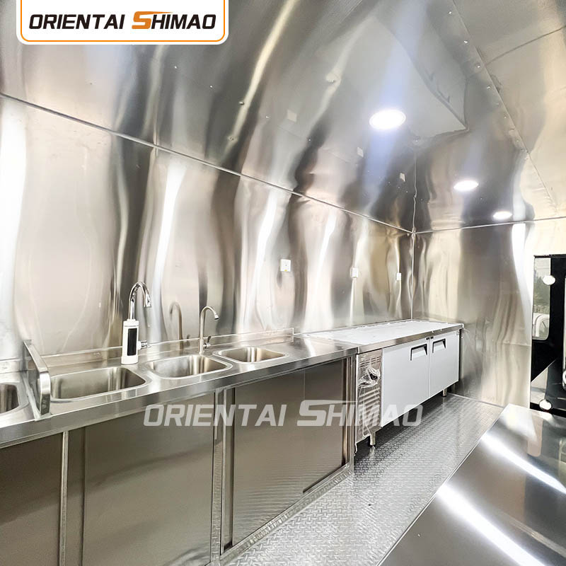 Внутренняя часть из нержавеющей стали: Внутренняя часть изготовлена из нержавеющей стали, что обеспечивает прочность и долговечность внутренней части, которую легко чистить и обслуживать и которая соответствует стандартам пищевой гигиены. Использование нержавеющей стали не только увеличивает срок службы фудтрака, но и обеспечивает гигиеничность и безопасность процесса приготовления пищи.