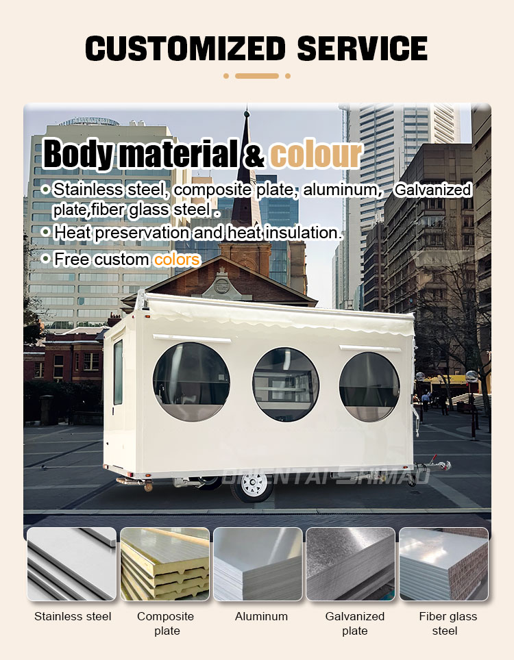 Материал и процесс: выбирайте высококачественные материалы и передовой производственный процесс, чтобы фургон с едой выглядел красиво и долговечно.