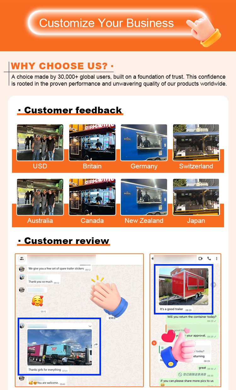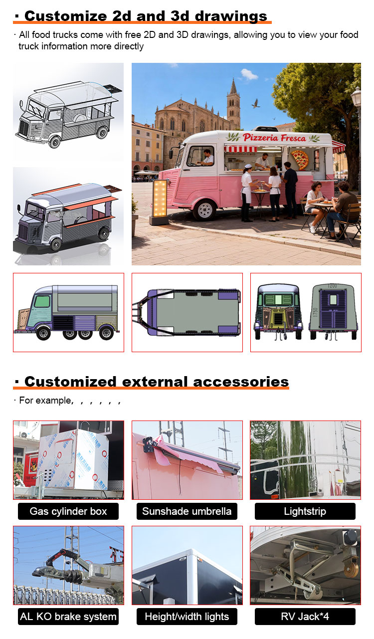 Материал и процесс: выбирайте высококачественные материалы и передовой производственный процесс, чтобы фургон с едой выглядел красиво и долговечно.